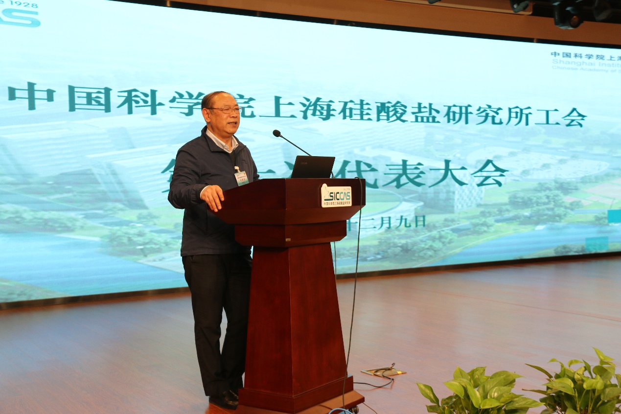 赵福祥代表科技工会对上海硅酸盐所工代会的召开表示祝贺,充分肯定了硅酸盐所工会在上级工会和所党委领导下取得的成绩。他对下一步工会工作提出希望,表示工会要把握正确的政治方向,坚持党对工会工作的领导;紧扣工运时代主题,团结动员广大职工建功立业,大力弘扬劳动精神、劳模精神、工匠精神;切实做好维权服务,增强职工的获得感、幸福感、安全感;融入研究所发展战略,凝聚推动发展的蓬勃力量。