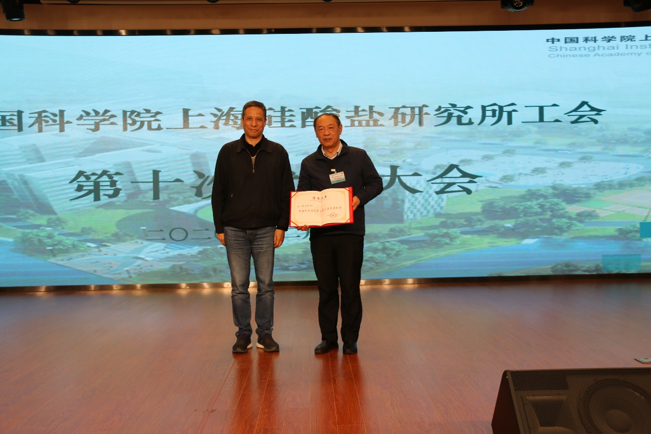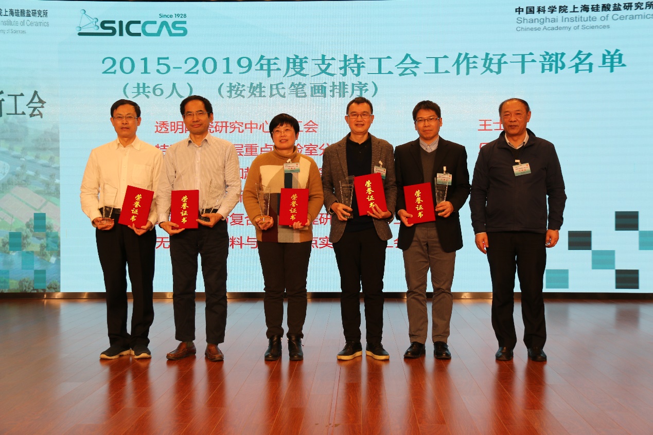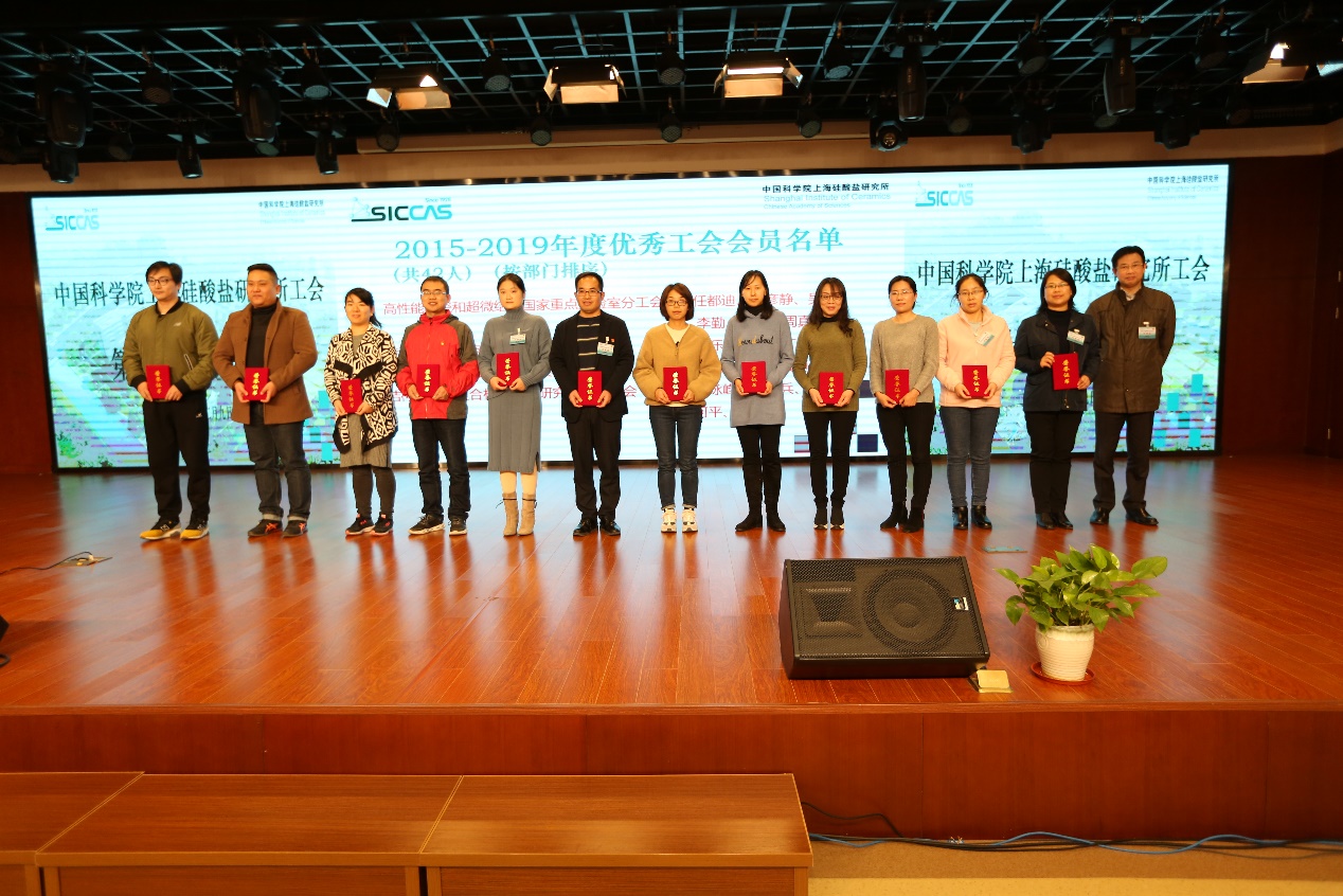 会议期间还对2020年度上海硅酸盐所第二届职工技能大赛技术标兵和技术能手,2015-2019年度上海硅酸盐所优秀工会工作者、优秀工会会员和大力支持工会工作的领导干部,2018-2020年度中国科学院模范小家、优秀工会积极分子、优秀工会之友进行了表彰。