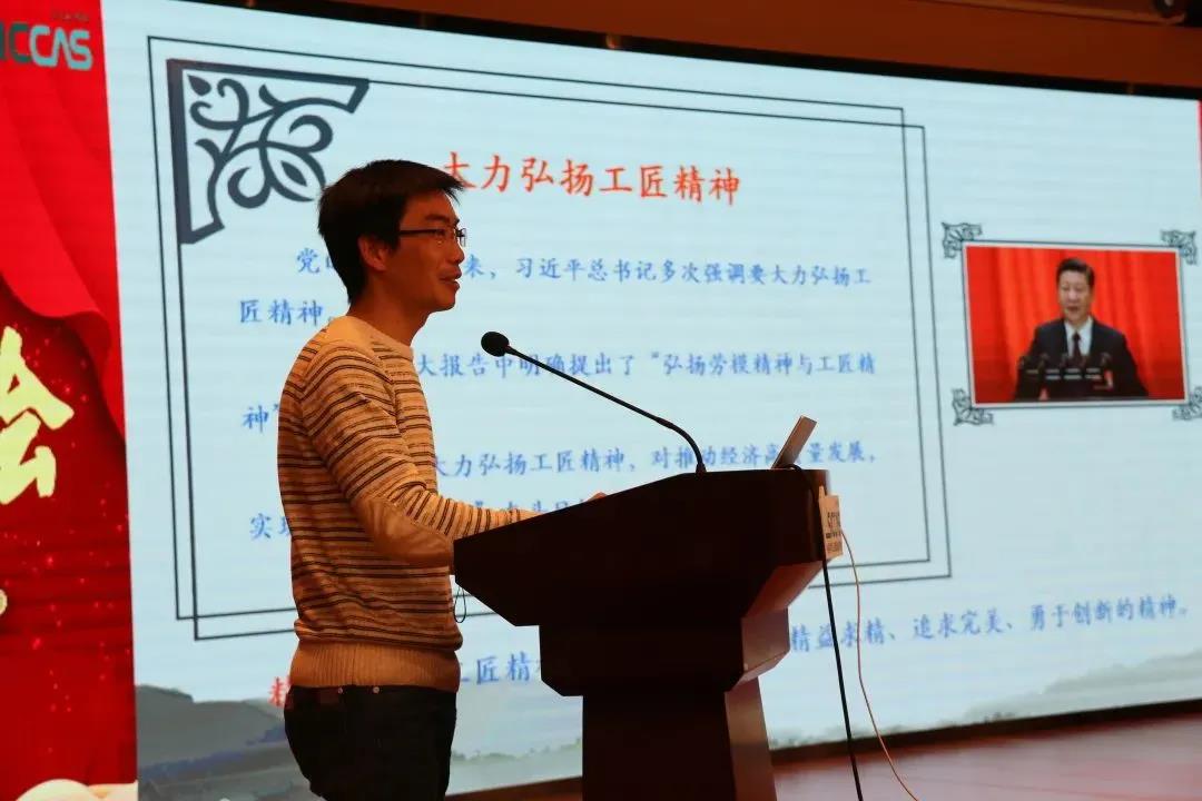 杨建华作大会总结。他高度肯定了师徒结对的形式和硕果,他希望师徒结对不仅要传承工匠精神,也要传承技能和科学知识,还要传承“孜孜不倦、敢于创新、敢为人先”的硅酸盐所文化精神,他期望师徒结对在坚持“四个面向”、不断向科学技术广度和深度进军中发挥更大的作为。