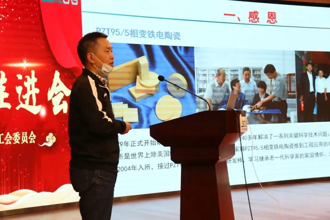 吴泓澍以“传承与发展”为题,给大家分享了硅所晶体加工40年的传承与发展史、对工匠精神的理解、职业境界以及严东生先生所题的“为硅酸盐所争光,为中国争光”给予他的极大鼓舞和持续鞭策。陈学锋以“三代师徒传承”为题分享了王永龄、董显林、陈学锋、丁李辉三代师徒接续奋斗的故事,让大家重温了老一代科学家面向国家重大需求、把论文写在祖国大地上的强烈家国情怀,也更让大家欣喜地看到年轻一代传承与光大、自立自强的可喜的创新风貌。刘雷敏以“工匠精神——匠心筑梦 精益求精”为题,讲述了他从师傅陈忠明身上所学的关键工艺技术以及爱岗敬业、追求极致、勇于创新的工匠精神。钟鑫以“师徒带教工作汇报”为题讲述了师傅牛亚然传承他的涂层关键制备技术、涂层性能评价技术、项目书撰写方法以及认真踏实的科研作风、永不言弃的执着精神、甘于付出的奉献精神和团队协作精神。四位师徒的精彩分享,博得了全场阵阵掌声。