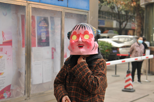 瞎子敲锣一直是游园活动的保留项目,每次都是排满了人,参与者戴上大头娃娃,时而偏左,时而偏右,围观者大声喊道“往左一点儿、往右一点儿、好、敲……”锤子落下,听到锣声,参与者摘下头盔,笑得合不拢嘴。
