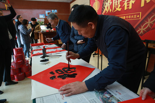 研究所党委书记黄从利和离退休老同志强德甫一起,现场挥毫泼墨精心书写百余幅福字和春联,一幅幅精彩的书法作品,一句句真诚的祝福,表达了对新年最美好的祝愿,给大家带去了喜庆和温暖,为研究所增添了浓浓的年味。