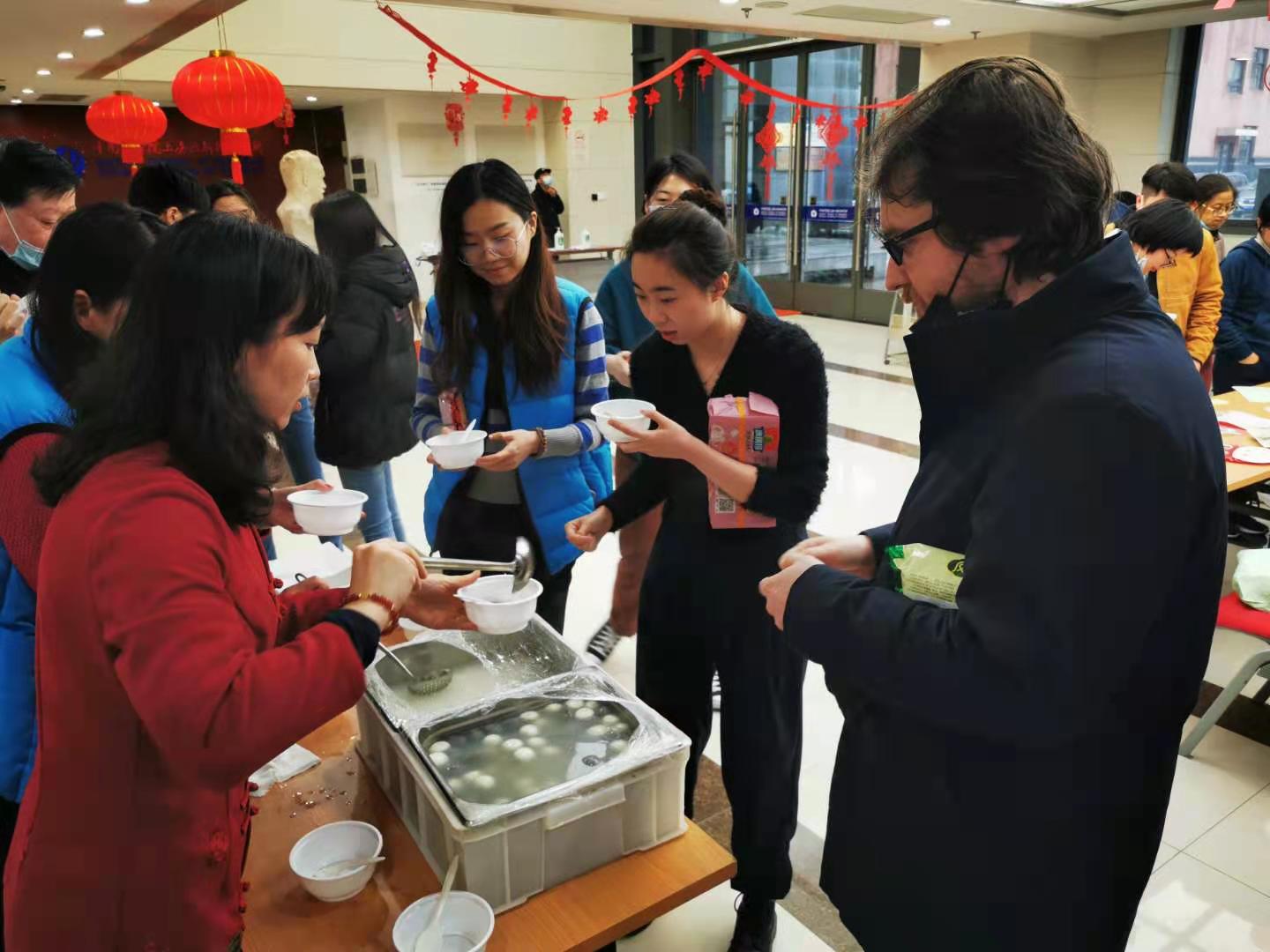 一楼的大厅里挂着大大小小的灯笼,不仅烘托出节日喜庆的气氛;同时还有留言墙、猜灯谜、制作灯笼、品尝汤圆等活动环节,每一个环节都让全体职工和师生感受传统节日的魅力。活动现场,“手工制作”环节大家跟着老师一起制作了各种手工灯笼,利用简单的彩纸裁裁、剪剪、折折、粘粘,一个独一无二的灯笼就做出来了,通过亲自动手让大家感受到手工制作的魅力,体验成就感及乐趣。“猜灯谜”环节,大家都跃跃欲试,看着灯笼上挂着的灯谜或低头凝思,或为猜对谜底而欢欣雀跃,或为猜错谜底而懊恼不已,欢声笑语溢满大厅;该环节还特别准备了英文灯谜,邀请外籍老师和学生一起参与。“留言墙”前,大家都留下了新年和元宵节的祝福,祝愿新一年心想事成,祝愿新一年IPS快速发展,祝愿新一年成果累累。最后一个环节是“品汤圆”,汤圆的名称与“团圆”字音相近,不仅寓意着团团圆圆,也寄托了对未来生活的美好愿望;咬一口芝麻馅的汤圆,散发着诱人的香气,甜蜜的馅儿立刻充满口腔,咬一口豆沙馅的汤圆,细腻的红豆细沙,咽下去的一刻幸福感爆棚,咬一口花生馅的汤圆,糯叽叽的小汤圆满口留香,每一种口味都有不同的韵味。