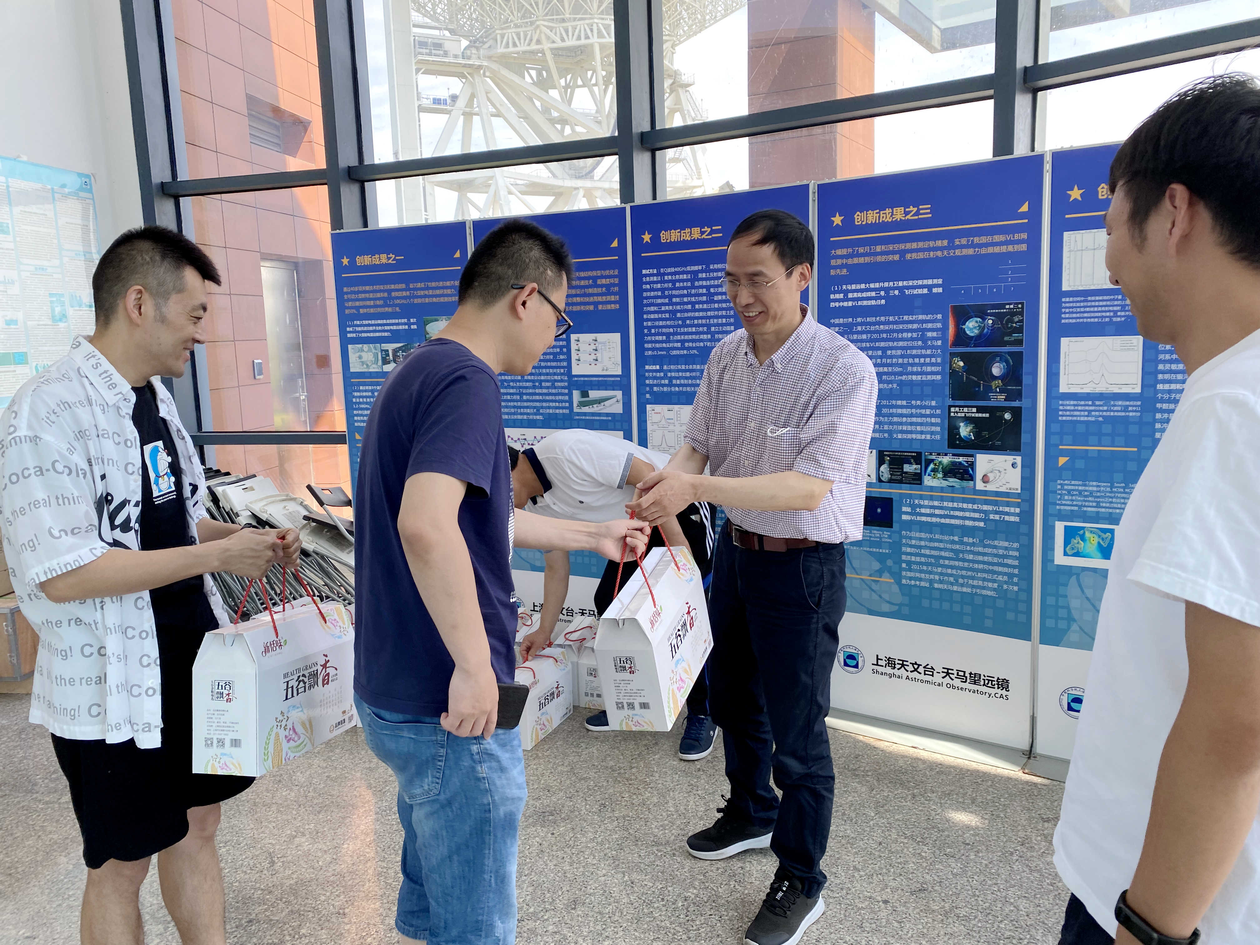 7月上旬,上海连续出现高温炎热天气。对于坚守在高温岗位的一线员工,连续的高温也牵动着台领导的心,为确保防暑降温各项措施落到实处,保障科研生产工作正常有序开展。7月15日,台党委书记侯金良、工会主席汪显坤等来到佘山科技园区、天文博物馆、60厘米激光测距观测基地、65米及25米射电望远镜观测基地等野外台站,对坚持在高温岗位的职工和劳务派遣人员进行“夏送清凉”慰问活动,为他们送上毛巾、五谷杂粮礼包等夏令防暑降温物品。同时,台领导还对各岗位高温期间的工作安排情况进行了了解,并叮嘱大家在高温作业中要合理安排工作时间,注意劳逸结合,加强自我保护,既要坚守岗位,也要注意保护好身体,做好防暑降温工作。