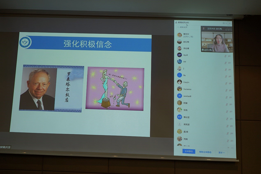 此次培训特别邀请到心理辅导经验丰富的中国科学院心理研究所心理健康应用中心培训工作负责人、心理咨询师、心理督导师赵红梅老师授课。赵老师指出,引发人的情绪和行为的不是事件本身,而是人的信念系统和对事情的理解。她通过具体案例列举出了心理暗示在成长过程中的重要作用,详细阐述了如何通过强化积极理念、创造积极环境、聚焦活在当下等方式调节情绪与心态的有效途径和技巧。她鼓励大家有效借助外部资源、盘活内部资源构建阳光心态,并与大家分享了中科院的心理服务资源。