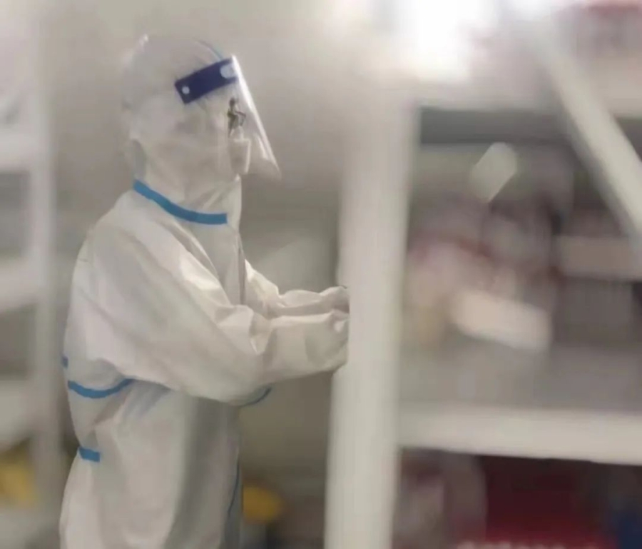 正式接手后的第二天则是咱们新的团队独立的日子,第一批未选择继续留下的志愿者则在酒店隔离。大家首先一起清理医废,进行封口,检查、补充耗材,准备对照样品,对仪器进行紫外消毒、用无纺布沾酒精擦拭桌面、台面等。最初在里面如果说话说多了或者动作幅度比较大会有种疲惫感,但不能算累。第二天明显比第一天要好,适应后就不会感觉那么疲惫。