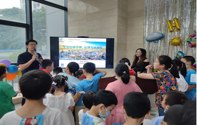 活动由妇工委主任刘贺娟研究员主持。本次活动分为“科普宣讲”和“跳蚤市场”两个环节。刘磊研究员给孩子们带来了一场绘声绘色、妙趣横生的科普讲座——《生活垃圾分类、处理与碳减排》,孩子们从中学习到了生活垃圾的组成、分类、垃圾处理与碳减排的知识,并且知晓如何行动,孩子们全程和刘磊老师积极互动。通过本次科普讲座,既提高了孩子们思维能力,又开拓了视野,增长了见识。