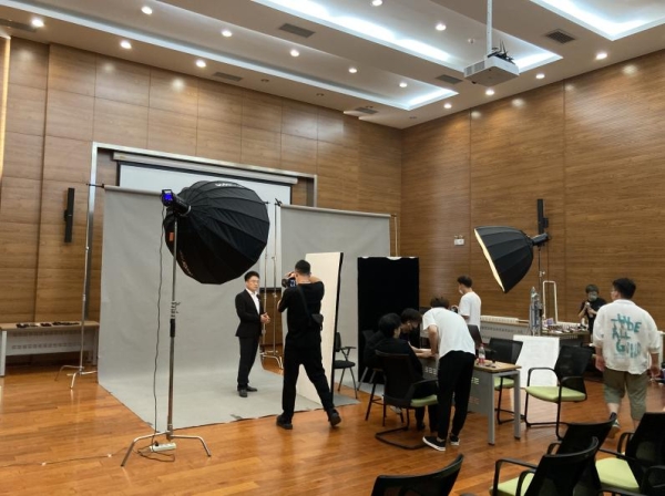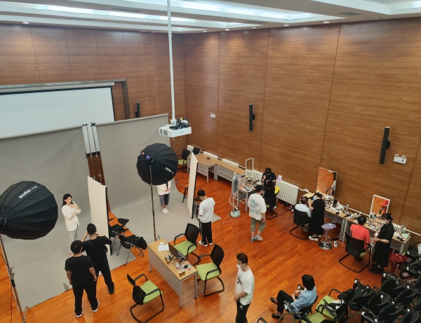 7月5日和7月8日的学术报告厅披上了新装,摇身一变,俨然成了一个专业摄影棚。在化妆师们和摄影师们的精心打造下,职工们一改往日的朴素,西装革履,容光焕发。一张张精致的妆容衬托着女职工们的端庄秀丽和男职工们的豪气英姿,一幅幅精彩的照片展现出科学史所全体职工积极向上的精神风貌和从容自信的职业形象。世界科技史研究室还组织全体成员拍摄了美美的“全家福”。