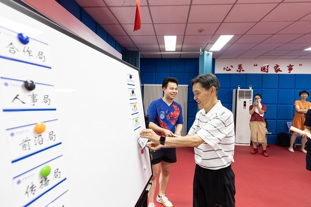 为推动“国球”普及,陆元盛还现场为队员答疑解惑,亲自示范技术动作。精湛的球技、耐心的指导赢得院机关同志们的高度赞许。