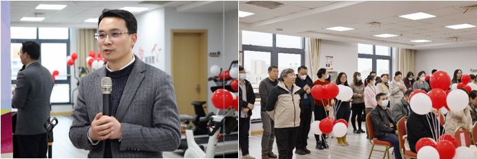 2月22日下午,高研院“职工健身驿站”正式揭牌,上海市总工会宣教部四级调研员余洪海、上海市体育局群体处副处长黄海松、上海市科技工会常务副主席李皓、中科院上海分院工会常务副主席、党建工作部部长朱熊、党群工作处薛芳、每步科技(上海)有限公司运营副总王慧玲、高研院院长黄政仁和党委书记、副院长李燕出席活动,揭牌仪式由高研院党委副书记、纪委书记、工会主席唐铮主持。