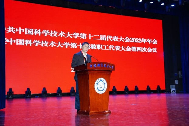 3月17日晚,中共中国科学技术大学第十二届代表大会2022年年会暨中国科学技术大学第十届教职工代表大会第四次会议在东区大礼堂举行第二次全体会议。在校歌《永恒的东风》铿锵有力的旋律中,会议正式开始。