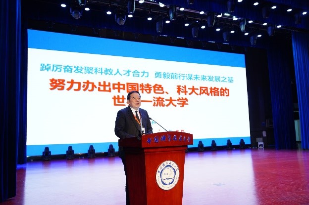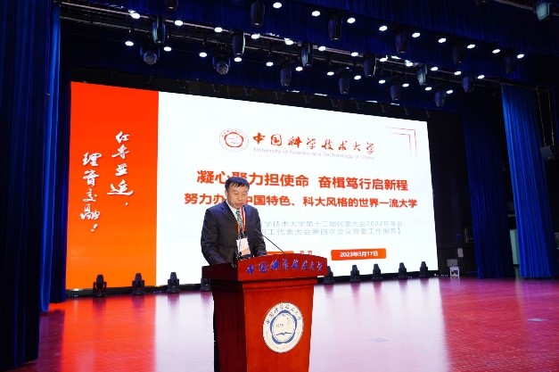 开幕式后,舒歌群与包信和分别作题为《凝心聚力担使命 奋楫笃行启新程——努力办出中国特色、科大风格的世界一流大学》的党委工作报告和《踔厉奋发聚科教人才合力 勇毅前行谋未来发展之基——努力办出中国特色、科大风格的世界一流大学》的行政工作报告。