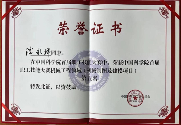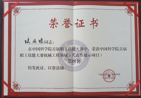 近代物理所通用技术中心机械准直技术室共4名职工(含1名领队)参赛,其中陆海娇同志参加了代表作展示比赛,荣获第四名的优异成绩。潘永祥和杨振2名同志参加了线上的机械制图和建模比赛,潘永祥荣获第五名的优异成绩。