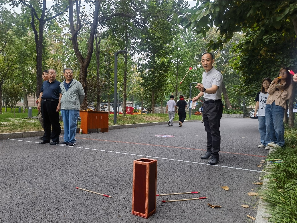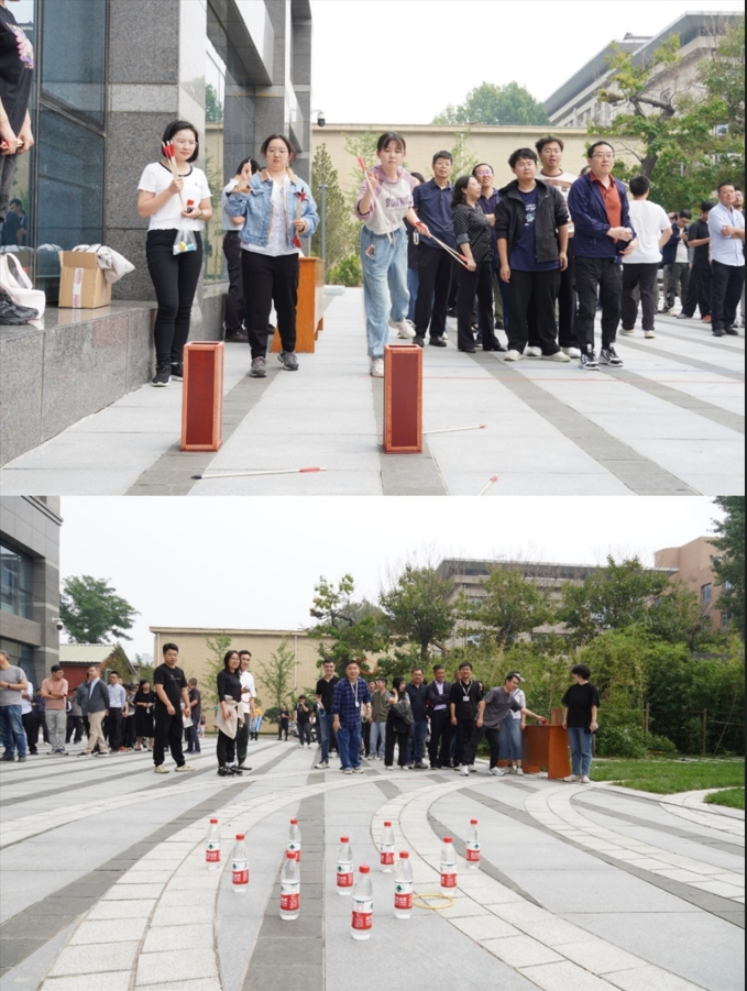 游艺活动集知识性、趣味性、运动性于一体,分为知识竞答和游艺活动两大板块。知识竞答题目围绕党的二十届三中全会精神、党纪学习教育、建所60周年所史知识、所第十七届质量月知识、保密知识等方面展开,旨在丰富广大职工和学生的知识储备,提高业务技能,坚定爱党爱国爱所情怀。游艺活动内容丰富,形式多样,包括套圈、丢沙包、投壶、投篮等传统游艺项目。参赛者们或全神贯注,稳扎稳打;或眼疾手快,精准出击。大家热情高涨,积极参与,欢声笑语不断,现场气氛十分热烈。在比赛中大家相互鼓励、相互加油打气,展现了良好的团队精神和竞技风貌。