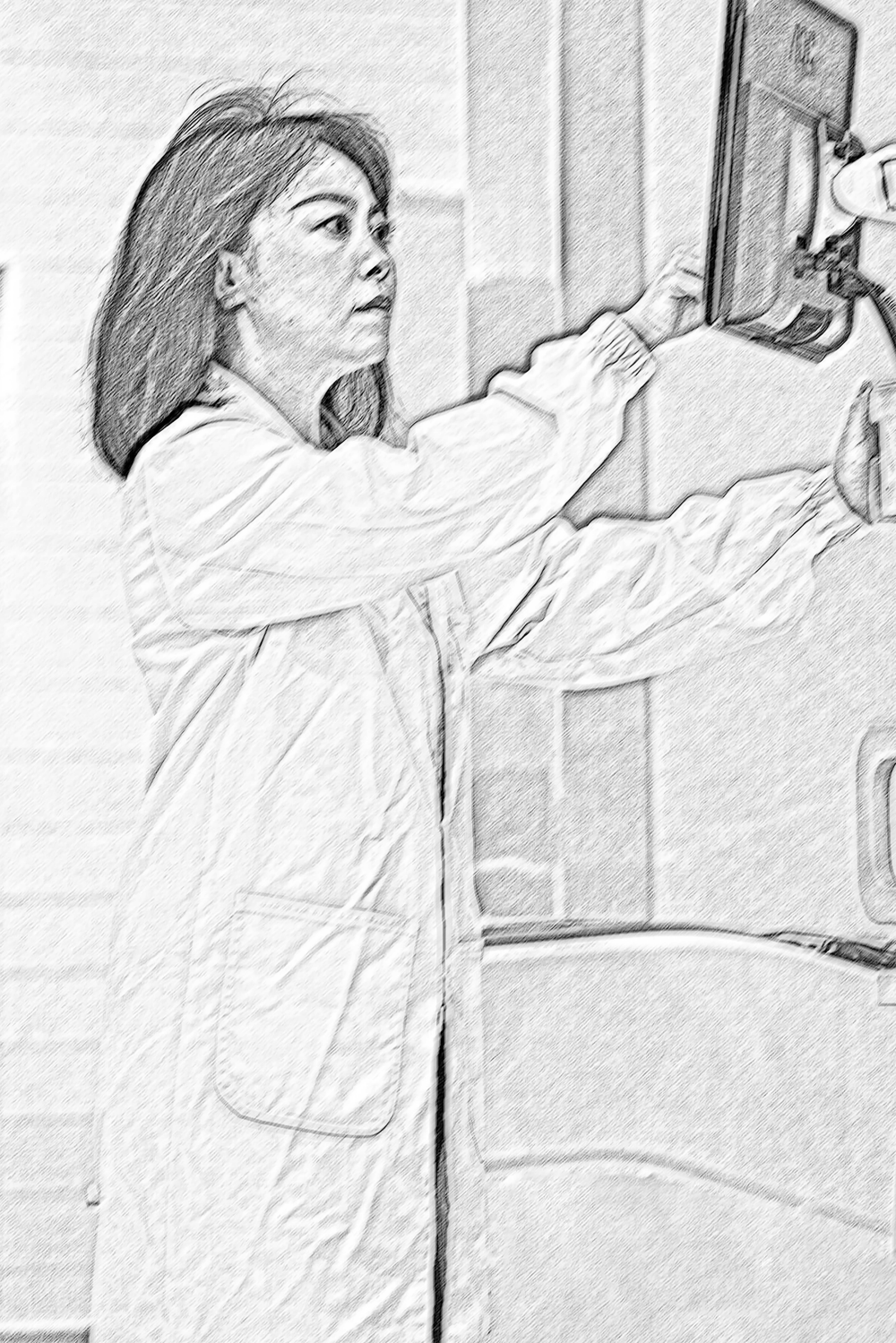这幅素描展现了一位年轻的女科学家以务实的态度探索未知,以创新的精神追求科学真理。她代表了新时代女性在科学领域的卓越贡献。