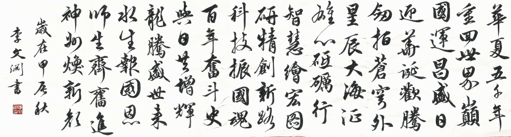 为了积极响应我院举办的“抢占科技制高点 科技报国迎华诞” 诗书画摄影比赛,我写了首诗名为《盛世华诞,水生献礼》,并用书法的形式展现,请大家批评指正。释文为“华夏五千年,重回世界巅。国运昌盛日,迎华诞欢腾。剑指苍穹外,星辰大海征。雄心砥砺行,智慧绘宏图。研精创新路,科技振国魂。百年奋斗史,与日共增辉。龙腾盛世来,水生报国恩。师生齐奋进,神州焕新颜。”