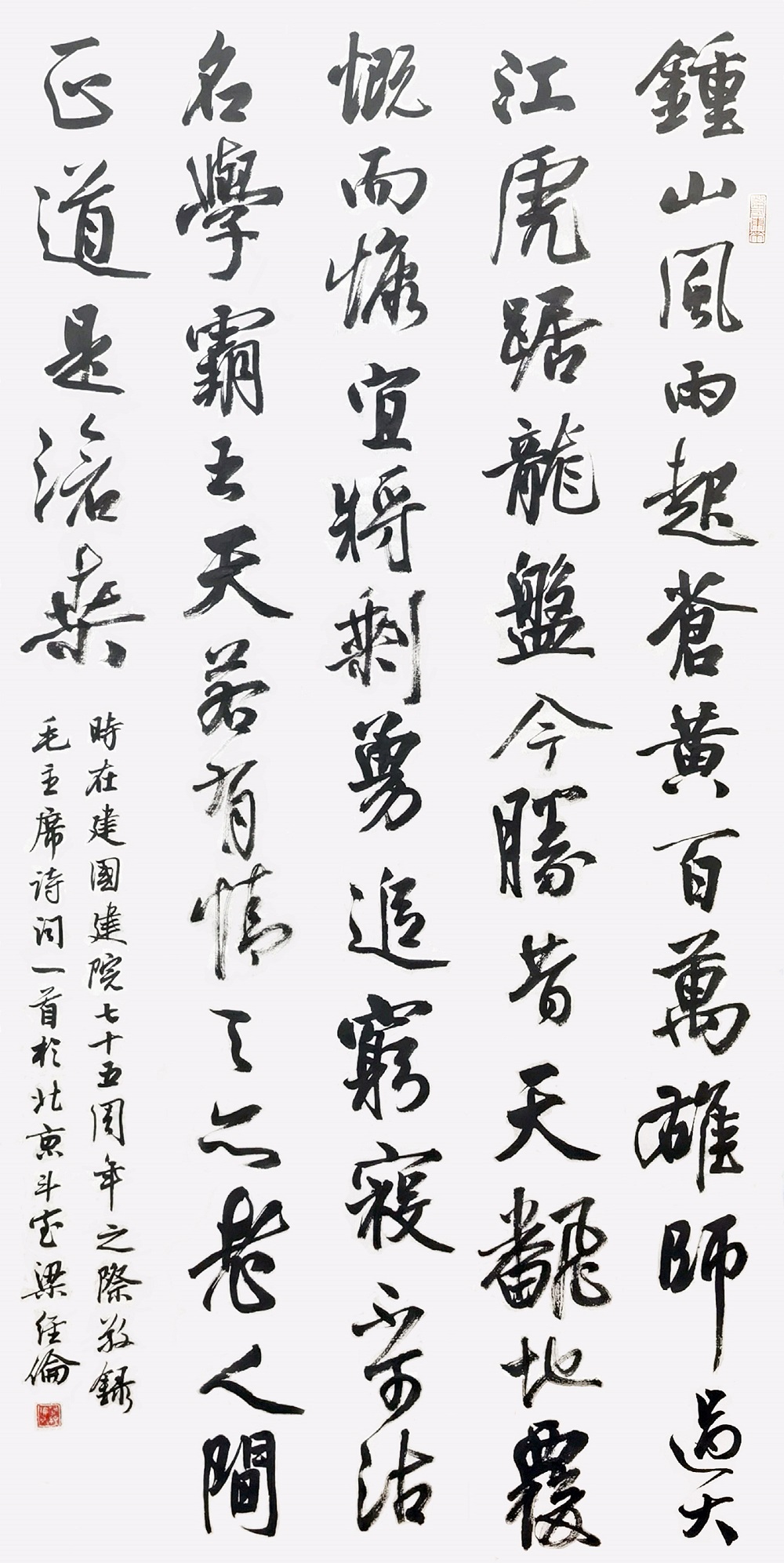 时在建国建院七十五周年之际,敬录毛主席诗词一首于北京斗室梁经伦