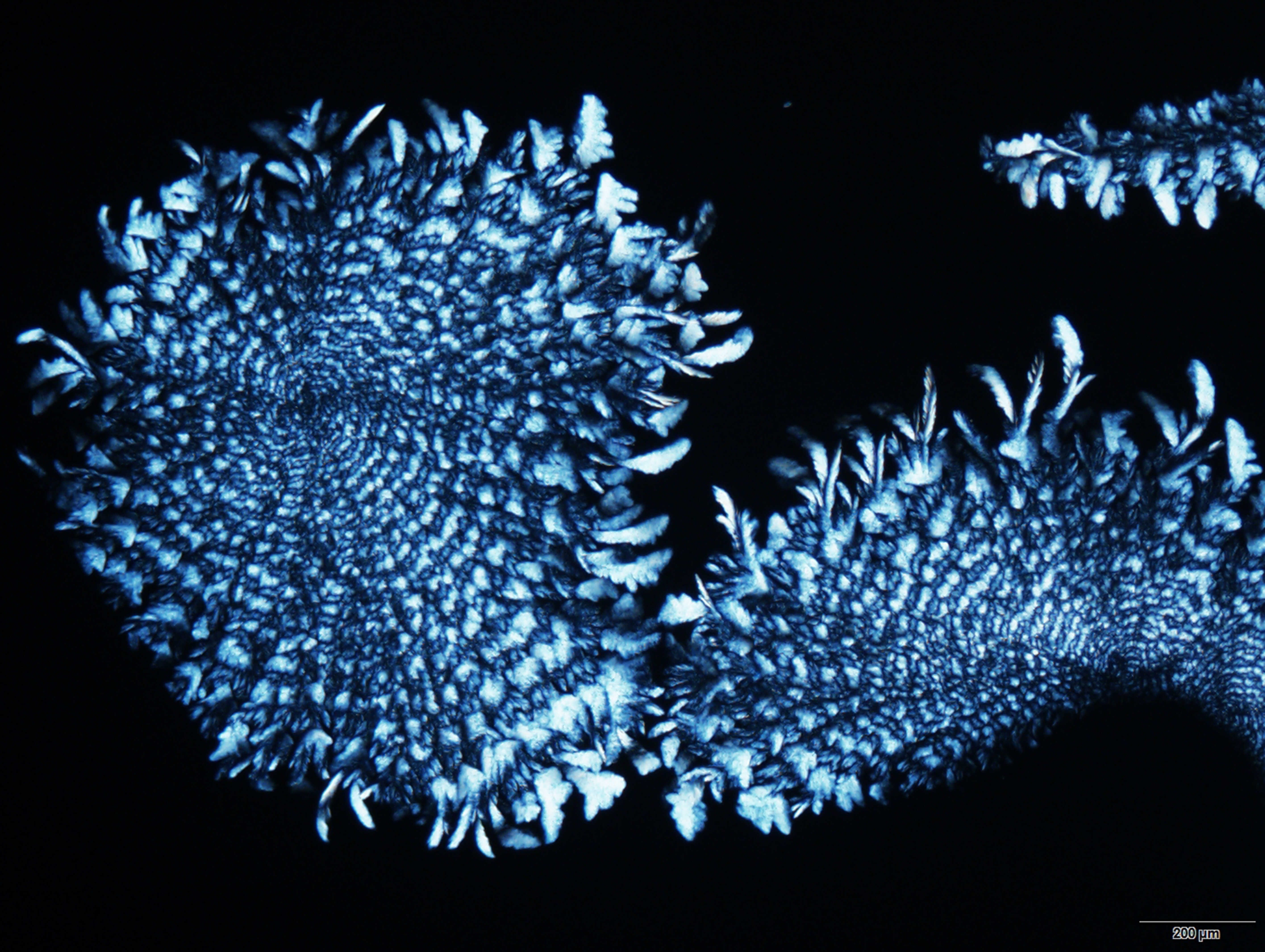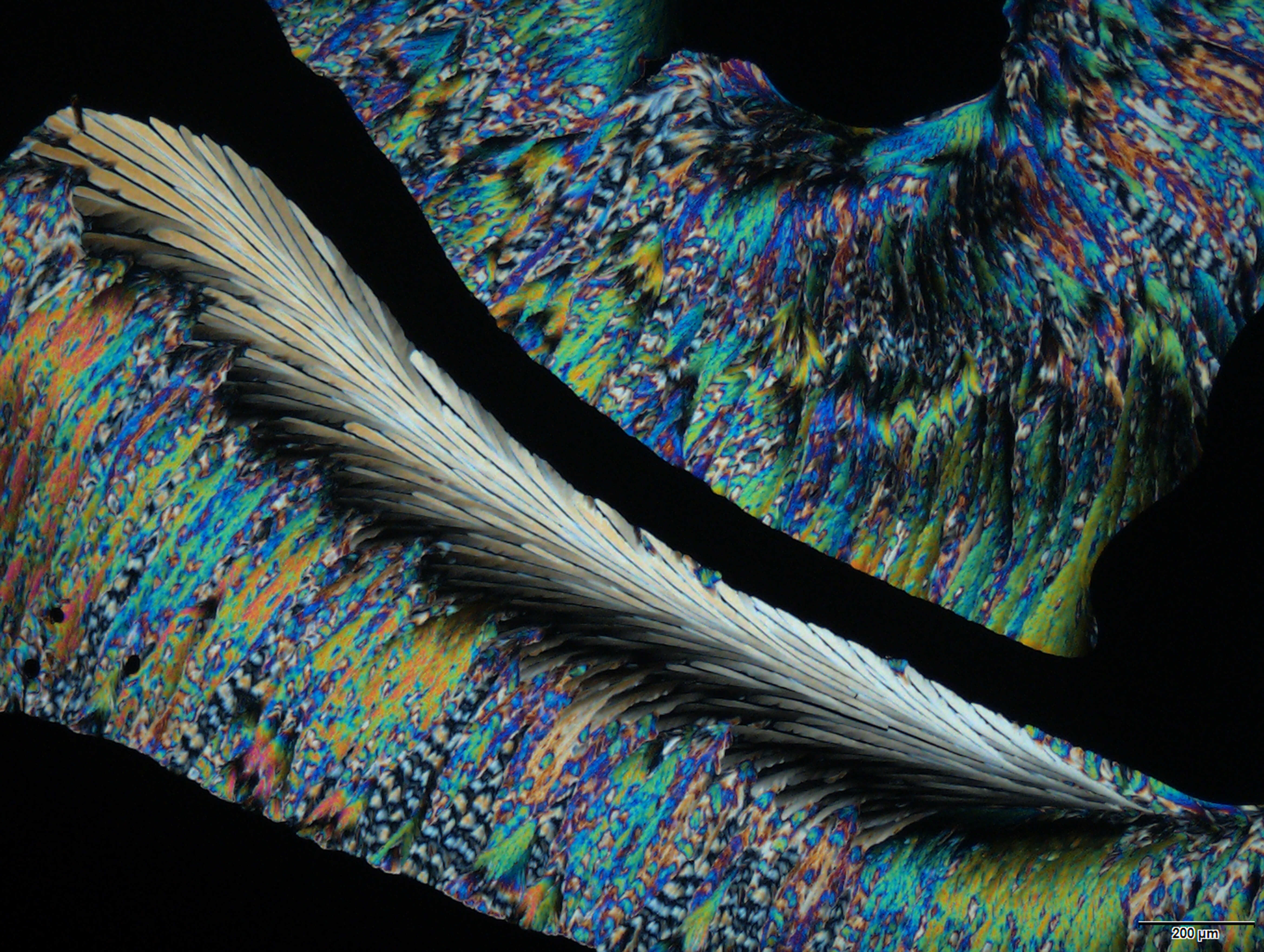 这组图是用偏光显微镜在偏光场下拍摄的具有双折射性的分子组装体的图像,其形貌各异,引人遐想,“和合”是发散亦是汇聚,在科技创新的道路上,需要凝心聚力,不断“突破”边界,展翼“腾飞”,“绽放”成果。