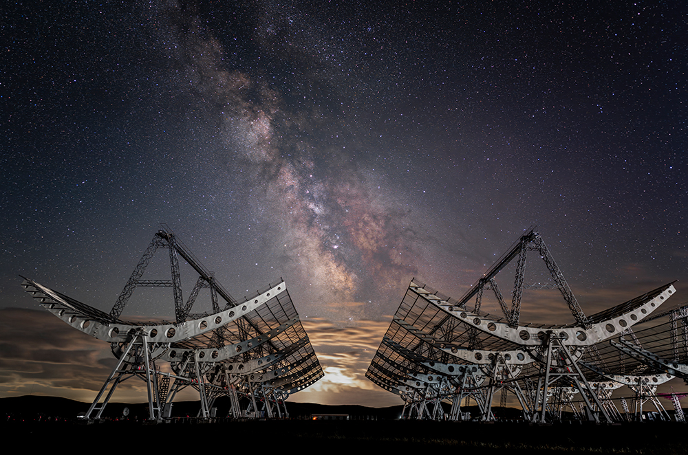 传说中捕梦网可以捕获夜晚空气中的各种美丽梦幻,中国科学院行星际闪烁监测望远镜作为 “十三五”国家重大科技基础设施,巨大的网阵时刻接收着宇宙深处的行星际闪烁,捕捉随机起伏的电磁波,倾听着宇宙的呢喃。
