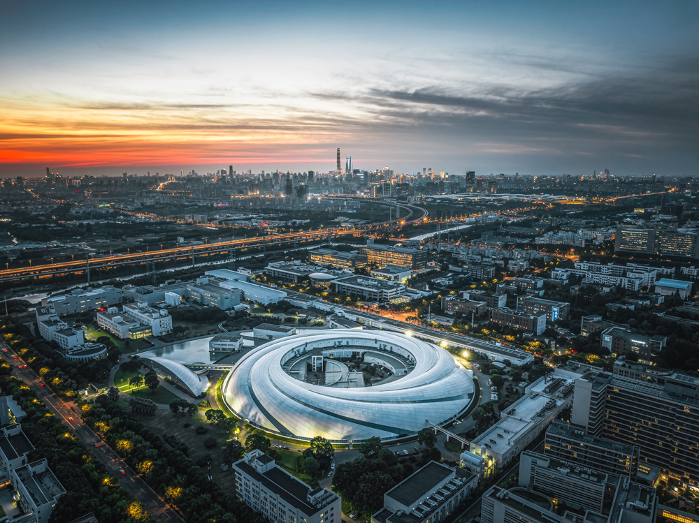 该作品捕捉了中国科学院上海高等研究院上海同步辐射光源在夕阳下的美丽瞬间,背后是科研设施、交通轨道和摩天大楼,展现了中国的科技创新与城市化进程。此作品旨在讲好科学家故事,弘扬科学家精神,体现中国科学院对科技进步的贡献及上海的国际大都市地位,为庆祝新中国成立75周年和中国科学院建院75周年献礼。