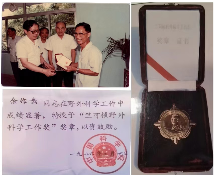 图一:余作岳获得竺可桢野外工作奖照片,右一为余作岳