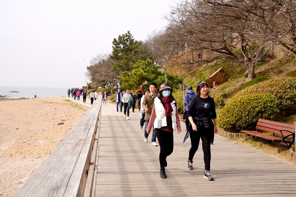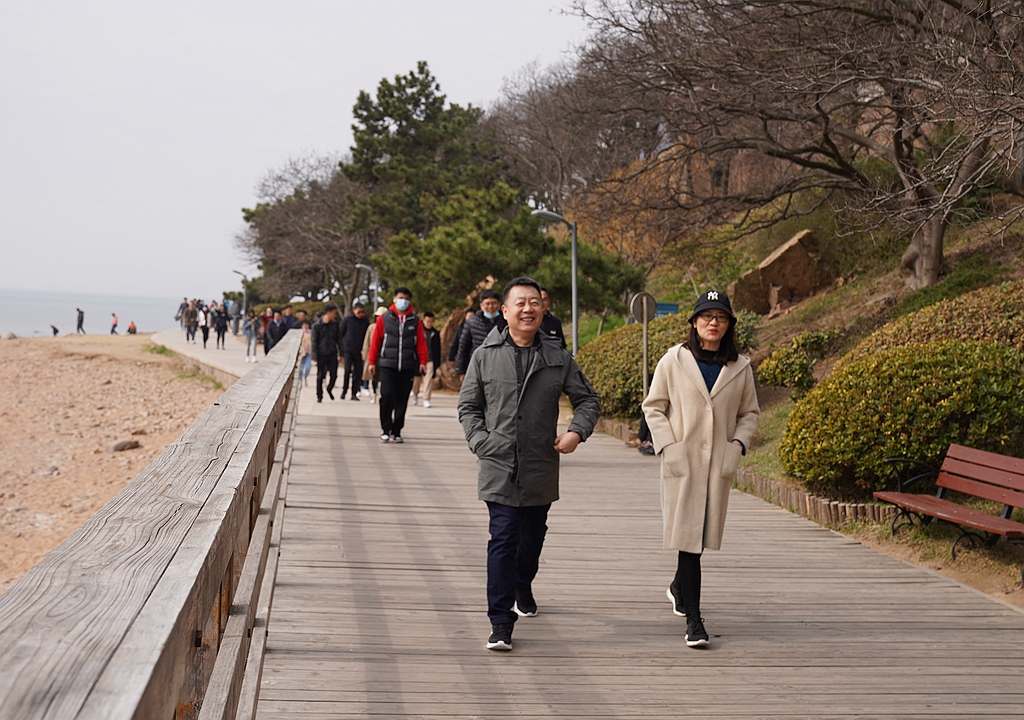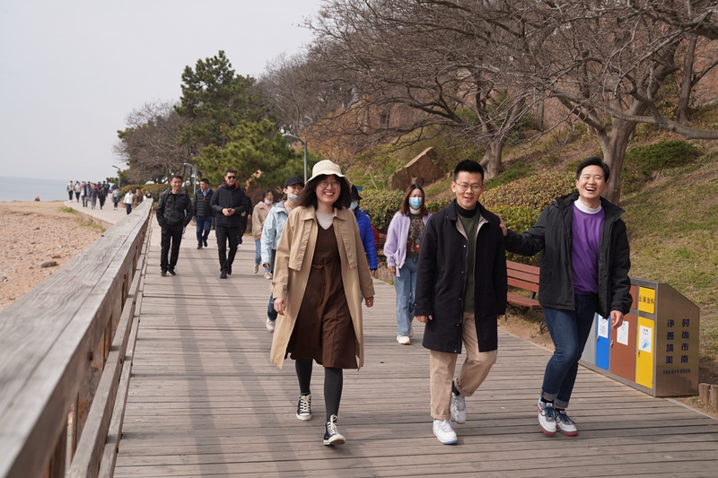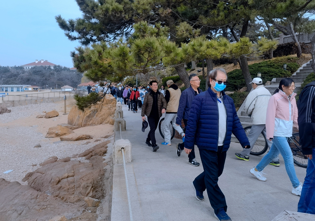 大家走出办公室,走出实验室,走进大自然,走进春天,沿着美丽的汇泉湾滨海木栈道一路前行,一边与身边同事、同学谈笑风生,一边欣赏沿途美丽的滨海风景和八大关建筑,在锻炼身体的同时放松调节了心情,舒缓了工作压力,增进了身心健康。