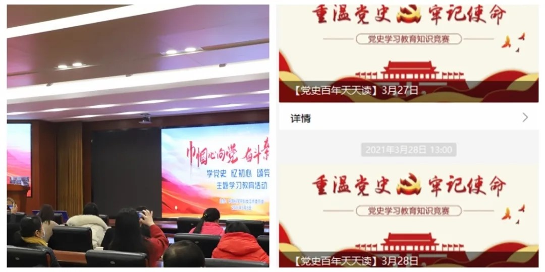 3月5日上午,校工会组织女工委员、女教职工代表近百人以视频会议的形式参加了中国科学院妇女工作委员会举办的“巾帼心向党·奋斗新征程——学党史 忆初心 颂党恩”主题学习教育活动。同时,把党史学习教育贯穿于文体活动中,借助健步走活动平台,联合党委宣传部、党委组织部推出“党史百年天天读”,学习党史知识。