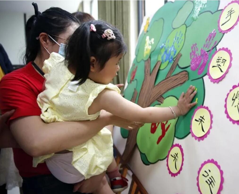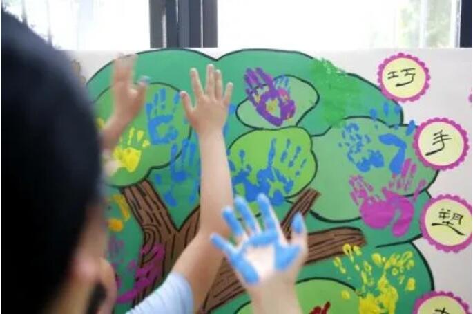独特的打卡签到方式让现场活动气氛很快活跃起来。“小科豆”们和他们的父母用五颜六色的颜料,以“小手盖大手”方式按出一个个“心”型图案,在“亲子树”上留下爱的印记。