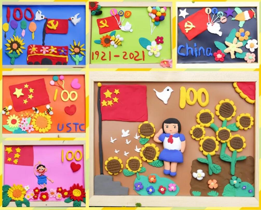 在附属中学美术组组长程春旭老师简要介绍了作品要求和注意事项后,18组家庭确定了自己的图案并开始创作作品。五彩缤纷的超轻黏土在“小科豆”们的小手中不一会儿变成了各种模样。活动现场其乐融融,孩子与父母讨论着不同颜色的黏土组合和构图配色。在家长的陪同下,“小科豆”们充分发挥自己的想象力做出了一面面“党旗”和“国旗”,捏出一串串如“100”、“1921”、“2021”等蕴含重要意义的数字,最终塑造出一个个绚丽多彩、简单可爱又有着浓烈爱党、爱国情怀的黏土作品,让“传承红色精神 亲子齐心向党”的主题得到充分呈现。