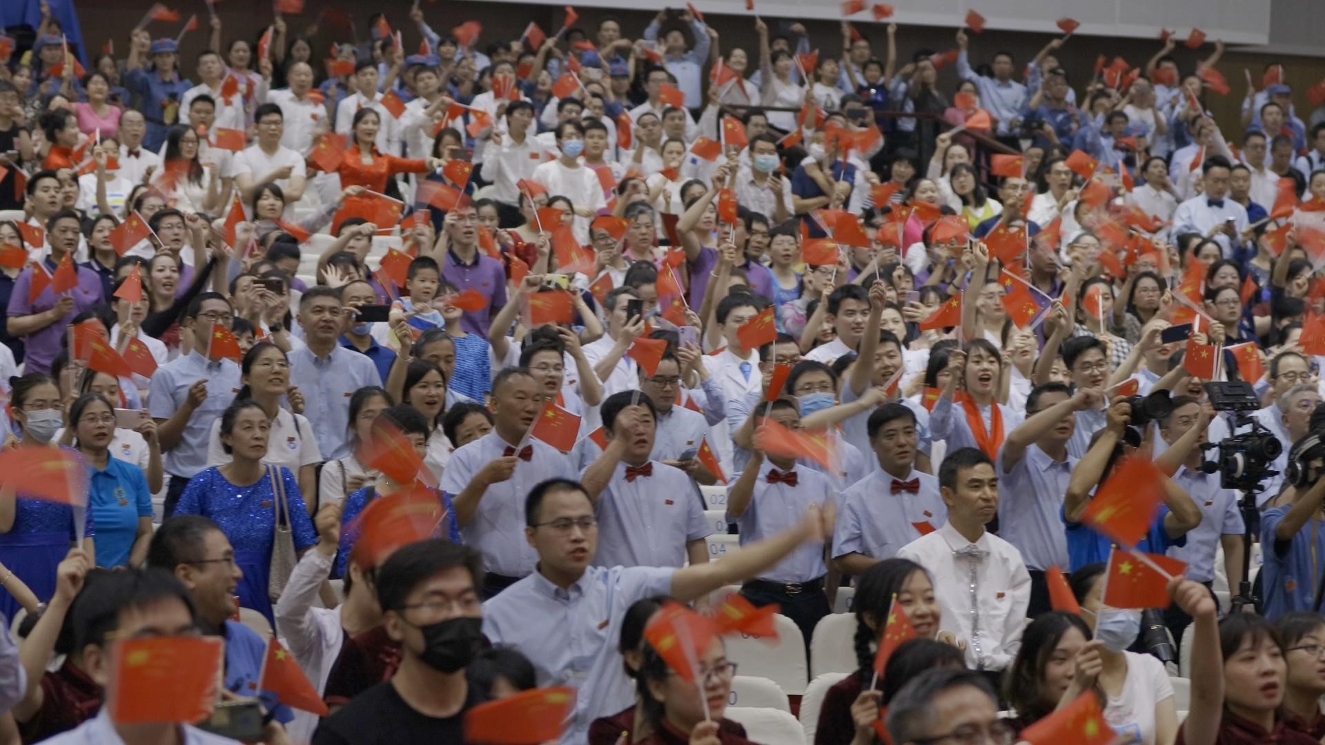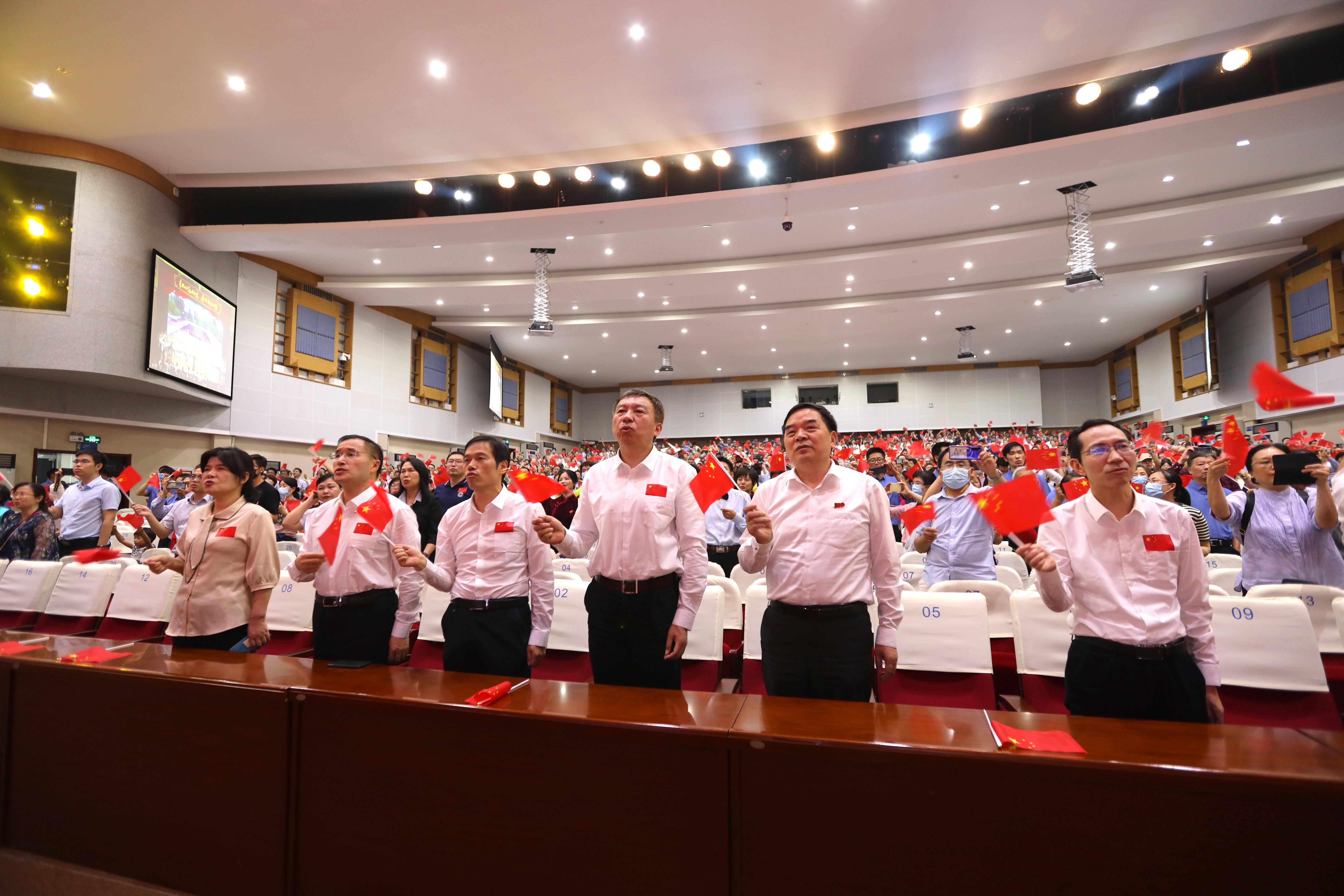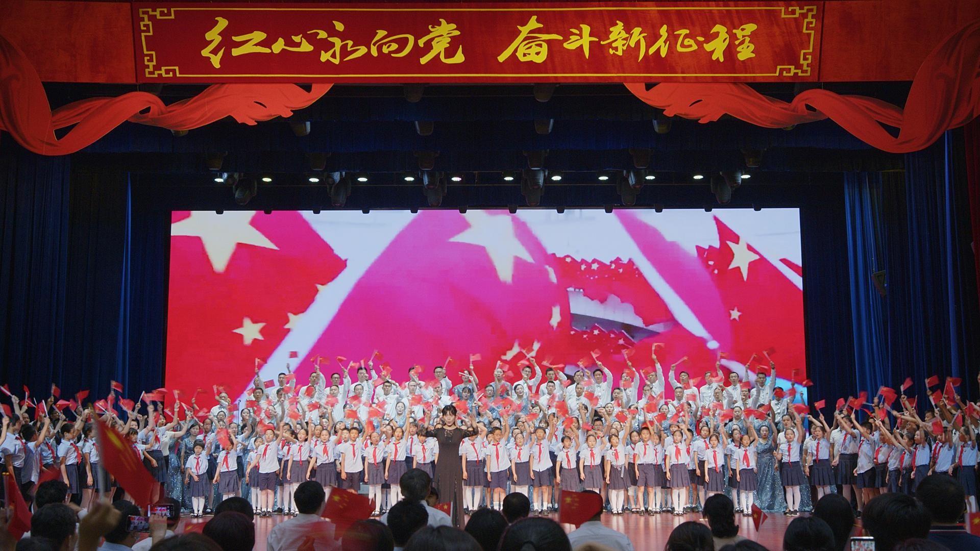 《没有共产党就没有新中国》《四渡赤水出奇兵》《游击队之歌》《在太行山上》,一首首经典的合唱展现了中国人民拼搏跋涉、开拓进取的历程;《红旗飘飘》《共和国之恋》《我的中国心》《把一切献给党》,用歌声传递出人们热爱祖国、高举旗帜的信念和决心;《打起手鼓唱起歌》《美丽的草原我的家》《赶圩归来啊哩哩》《鼓浪屿之波》《长江之歌》《母亲的微笑》,和着美妙的音乐、悠扬的旋律,参演的教职工们从歌声里倾情表达出内心的喜悦。