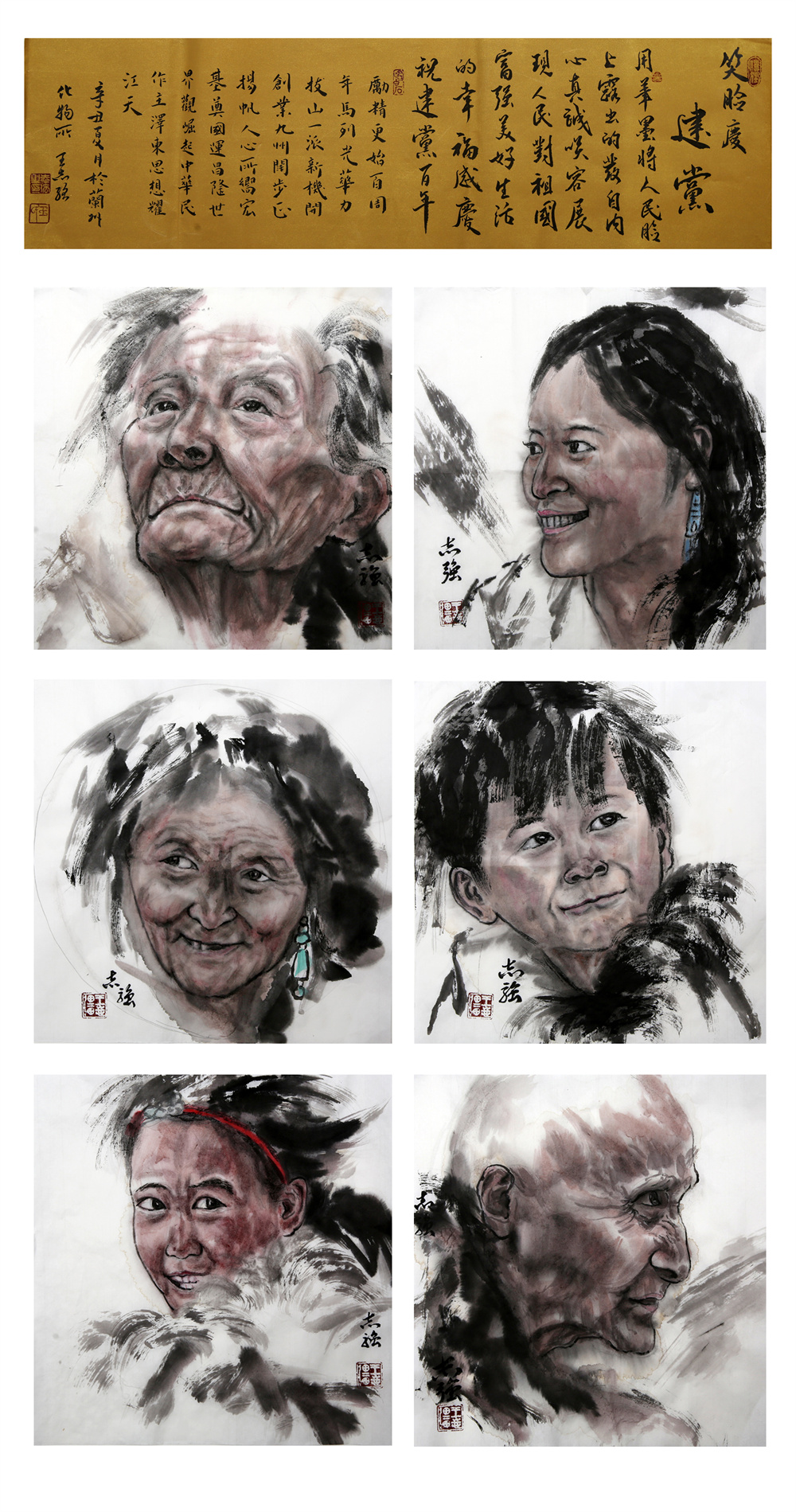 这种诗画结合的尝试,特别是只用头像的组合,打破传统国画内容表现单一的问题,较为新颖。