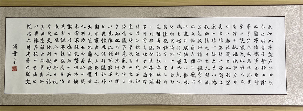 作品简介:《兰亭序》全文28行、324字,通篇遒媚飘逸,字字精妙,点画犹如舞蹈,有如神人相助而成,被历代书界奉为极品。
