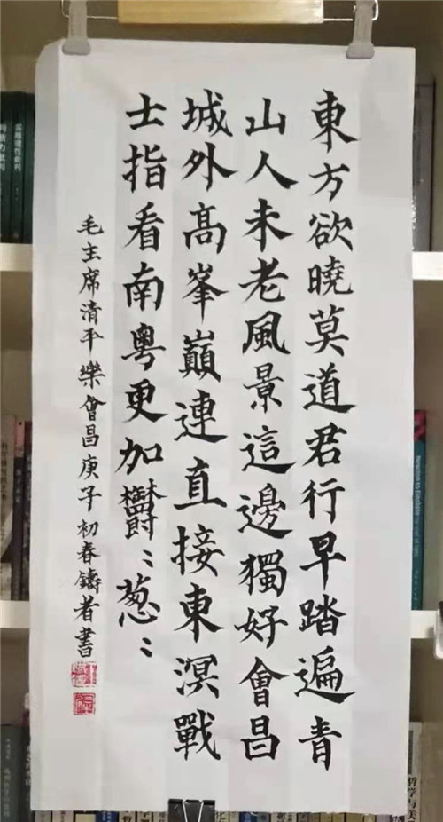 作品简介:通过学习党史,进一步对毛主席诗词有深切感受。毛主席的这首词写于长征即将开始之际战事非常危急,国民党军对中央苏区的第五次“围剿”达到高峰。身处逆境,心中所想的,始终是党的事业,始终对未来充满信心。