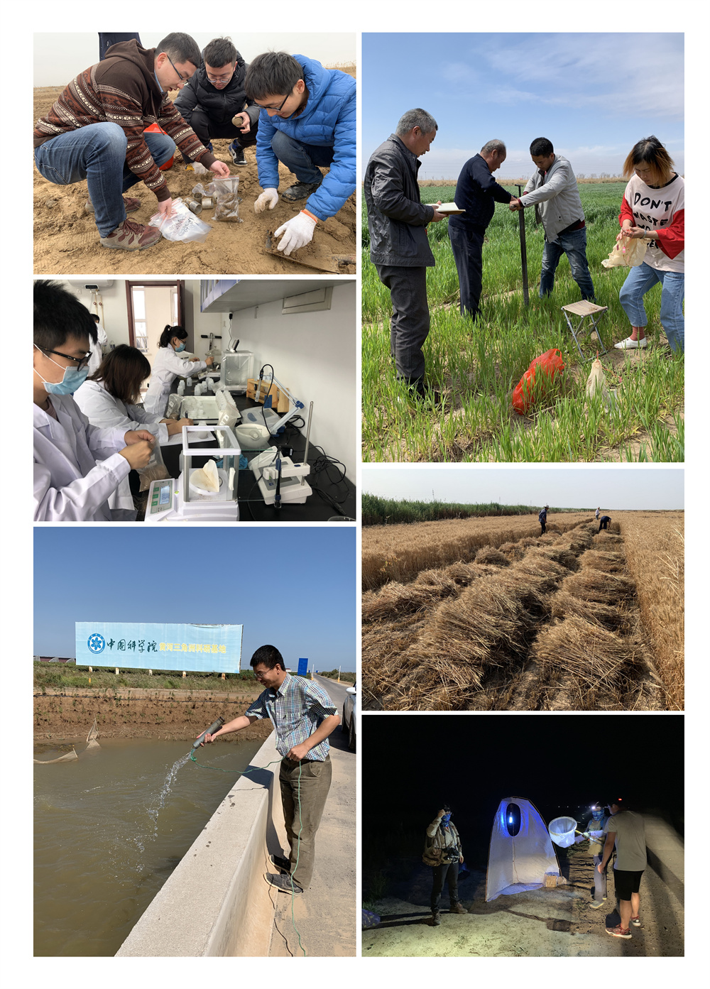 作品简介:图片2019年拍摄于中科院地理资源所黄三角研究中心。图中主要包括土壤样品、地表水样品、样品预处理、小麦测产和昆虫样品采集等,体现了研究人员克服风吹日晒、蚊虫叮咬等困难,认真完成任务的科学态度。
