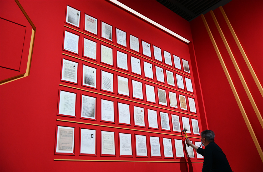 作品简介:5月24日,“众心向党 自立自强——党领导下的科学家”主题展在北京中国国家博物馆开幕。展览共分6个部分和1个专题,围绕“众心向党 自立自强”主题,以中国共产党的坚强领导和伟大指引为主线,用260余张图片、190件套实物和11个多媒体的形式,将“两弹一星”精神、西迁精神、载人航天精神、抗疫精神、探月精神等源于科技界的革命精神贯穿在一起。本次展览的亮点是首次集中展示了百名科学家的入党志愿书,组成一面“永远跟党走”的志愿书墙,现场效果非常震撼。与志愿书原件一起展出的还有我社出版的《百位著名科学家入党志愿书》。在开幕式前一天,作者跟随编辑一起将展品送达布展现场,记录了此次展览的布展瞬间。