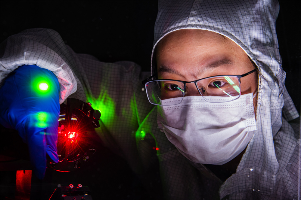 作品简介:这是光学元件损伤检测过程的一个场景,光学元件的损伤量级是几个微米,检测人员需要将检测光、指示光、照明光、检测探头等数个不同光斑和视场大小光学源器件校准到一点,检测人员必须耐心、细致的操作,反复确认。