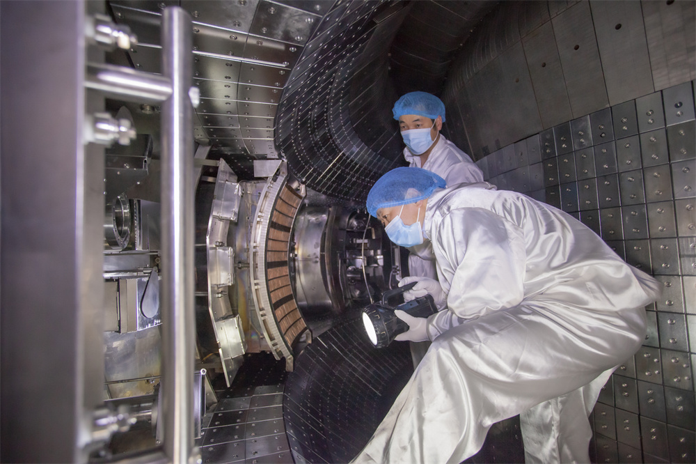 科研人员在EAST大科学装置上开展性能提升与升级维护工作
