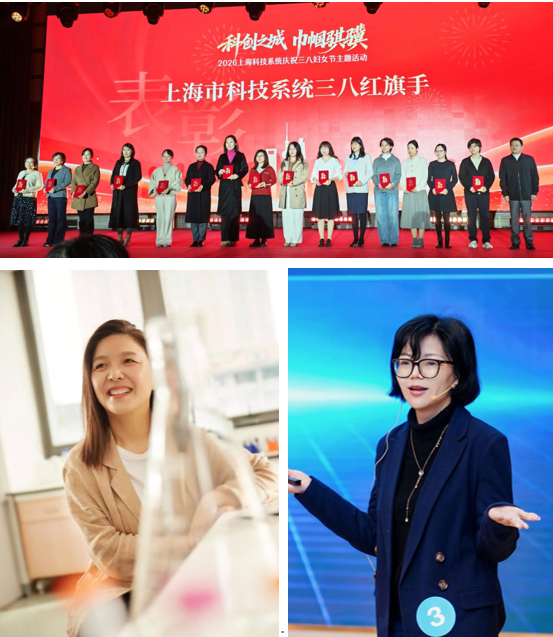 图4:上- 谢岑研究员获颁上海市科技系统三八红旗手(上图-右四),