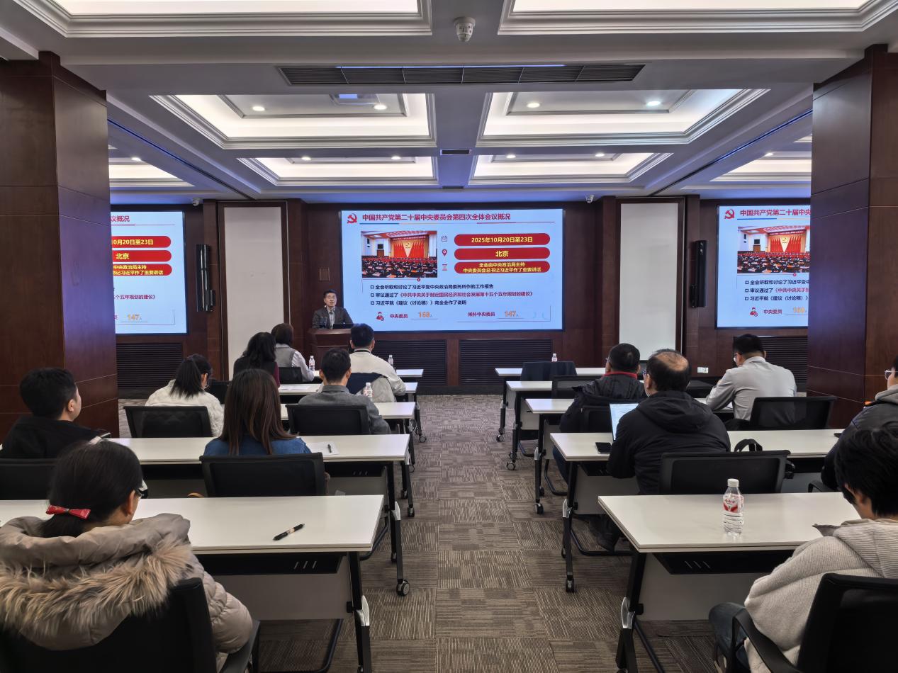 纪委书记、工会主席王明辉为工会、妇委会作党的二十届四中全会精神学习专题报告。报告围绕全会提出的新思想、新论断、新要求,结合自身理解感悟,系统阐述党的二十届四中全会的重大意义、核心要义和实践要求,并针对当前国内形势及我院我所发展状况,深刻解读战略机遇与风险挑战并存的态势,对未来工作提出希望与要求。