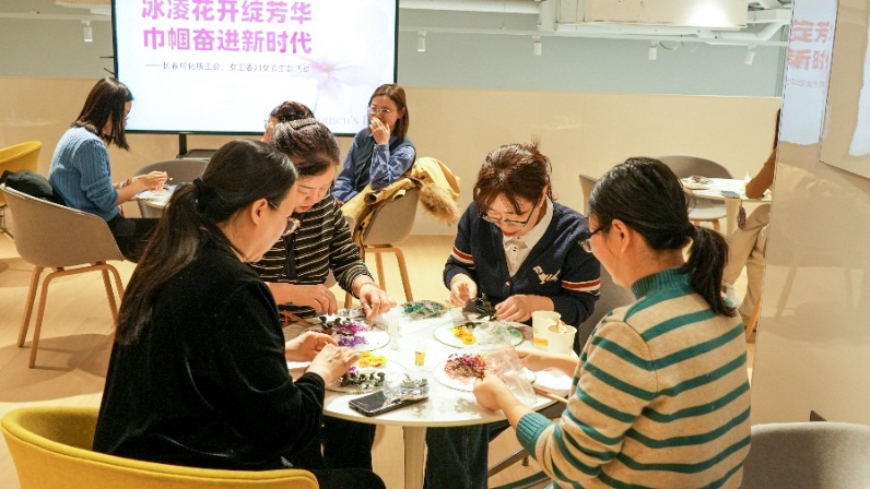 3 月 6 日下午所工会、女工委在莲花山院士科研产业园美学馆,精心组织开展了“冰凌花开绽芳华 巾帼奋进新时代”主题活动。所内60余名女职工欢聚一堂,在交流分享、美学体验与参观实践中,共庆属于自己的节日,共话工作与成长。