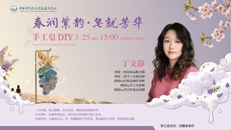 为丰富女职工精神文化生活、缓解科研工作压力,所妇委会精心组织手工皂 DIY 体验活动。特邀国家二级手工皂制皂师现场教学,带领大家从配料、融皂、调色到塑形、脱模,亲手制作葡萄香氛手工皂。女职工们在轻松温馨的氛围中交流创意、协作创作,沉浸式感受手工创作的乐趣,在愉悦体验中放松身心、增进情谊,以更饱满的精神状态投入科研与生活。