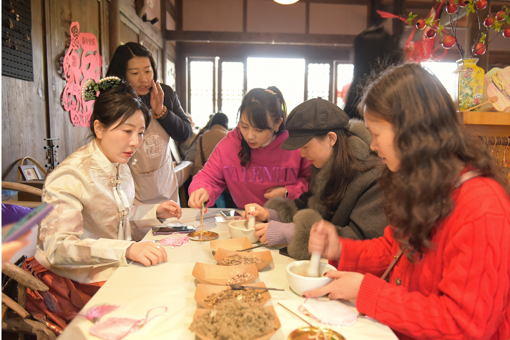 当“女神”们遇到传统非遗,会碰撞出怎样的火花?在古风雅韵的香囊手作活动中,“女神”化身“巧娘”,在老师的指导下,穿针引线,填充药香。将平安顺遂的期许,缝进精致的锦囊;将健康喜乐的祝福,融入天然的草木。一个个玲珑可爱的香囊新鲜“出炉”,或挂于包上,或佩于腰间,不仅是独一无二的饰品,更是一份温暖的守护。