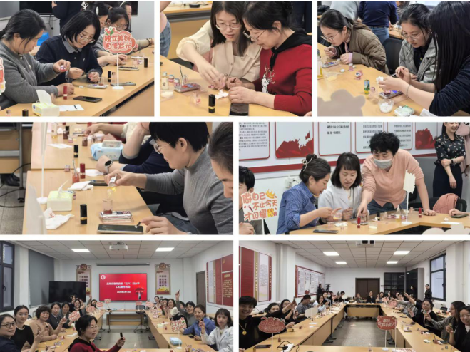 3月12日和13日下午,开展了口红制作活动。大家自主挑选喜爱的色号与精油,按照流程完成原料配比、搅拌融料、灌装定型、脱模装壳等环节,亲手制作了专属天然口红。体验了手工创作的乐趣,展现了追求美好、热爱生活的积极姿态。