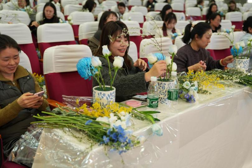指尖绽芳华,花艺致美好。为进一步丰富女职工的精神文化生活,提升女职工综合素养、培养艺术品位,3月6日下午,光电所邀请了专业插花老师做现场指导,组织130余人开展“情暖三月 花漾生活”插花活动,感谢女职工们长期以来为光电科技事业发展所付出的努力,鼓励大家以更加饱满的热情在工作岗位上绚丽绽放。现场如同沉浸在蓝色花海中,活动氛围温馨雅致、其乐融融。在花艺老师的指导下,大家或专注修剪枝叶,或低声交流心得,花香与笑语交织,尽显巾帼风采。“活动让我们在忙碌的生活中,感受到诗意与美好,这束花是最特别的节日礼物。”在场的女职工纷纷表示。