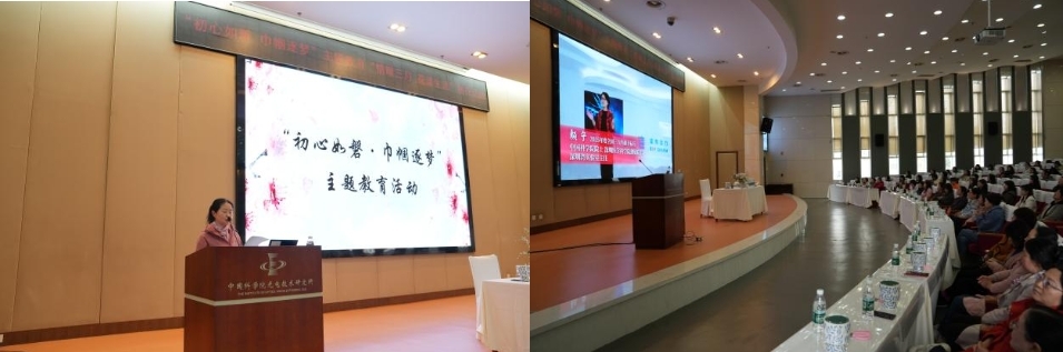 为引导女职工在抢占科技制高点的过程中施展巾帼力量、彰显巾帼担当,3月6日,光电所组织120余名女职工开展“初心如磐 巾帼逐梦”主题教育活动,学习党的二十大及二十届二中、三中、四中全会精神,重温习近平总书记关于妇女儿童和妇联工作的重要论述。观看女性科学家砥砺奋进的专题片,感受她们在科技前沿勇攀高峰的巾帼风采。引导广大女职工始终胸怀“国之大者”,坚定矢志投身科技创新事业的信念和决心。