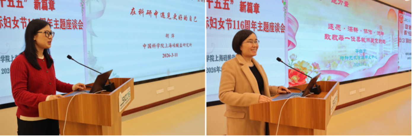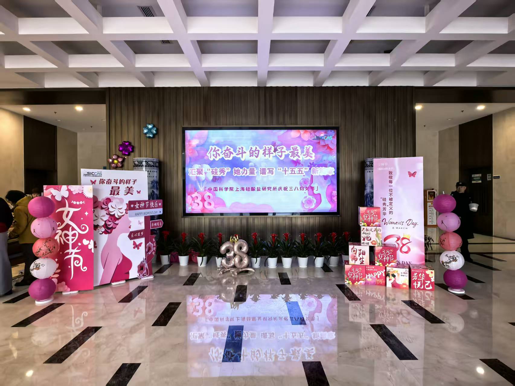 2026年3月,中国科学院上海硅酸盐研究所妇女工作委员会紧扣中国科学院“科苑女性活动月”工作部署,以“你奋斗的样子最美”为主题,依托“硅秀”品牌,成功举办了“汇聚‘硅秀’她力量,谱写‘十五五’新篇章”系列活动,既关注女性成长发展,又体现组织关怀温度。活动月期间,主楼大厅精心布置的主题展板与电子屏滚动播放节日祝福,营造出温馨欢乐的节日氛围,全面展现了女性科研人员昂扬向上、锐意进取的精神风貌。