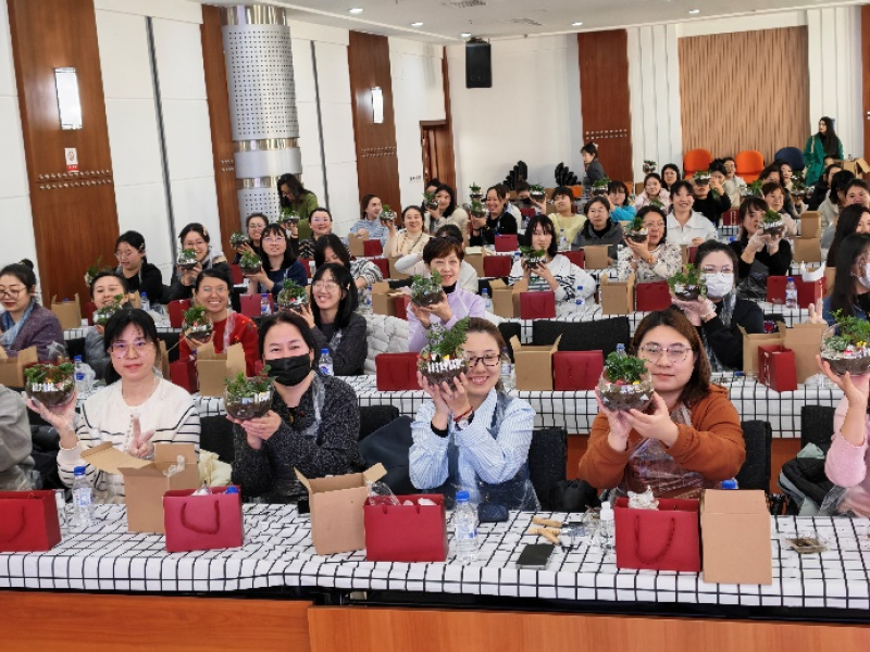 二是举办微景观手作活动。 3月6日下午,金属研究所女工委分两场组织近300名女职工开展了微景观手作活动。在专业老师指导下,女职工们充分发挥想象力,精心搭配绿植、砂石、摆件,创作出一盆盆错落有致、生机盎然的微景观作品。活动现场气氛热烈,大家互相欣赏、交流心得,在轻松愉悦的氛围中舒缓了工作压力,增进了彼此情谊。