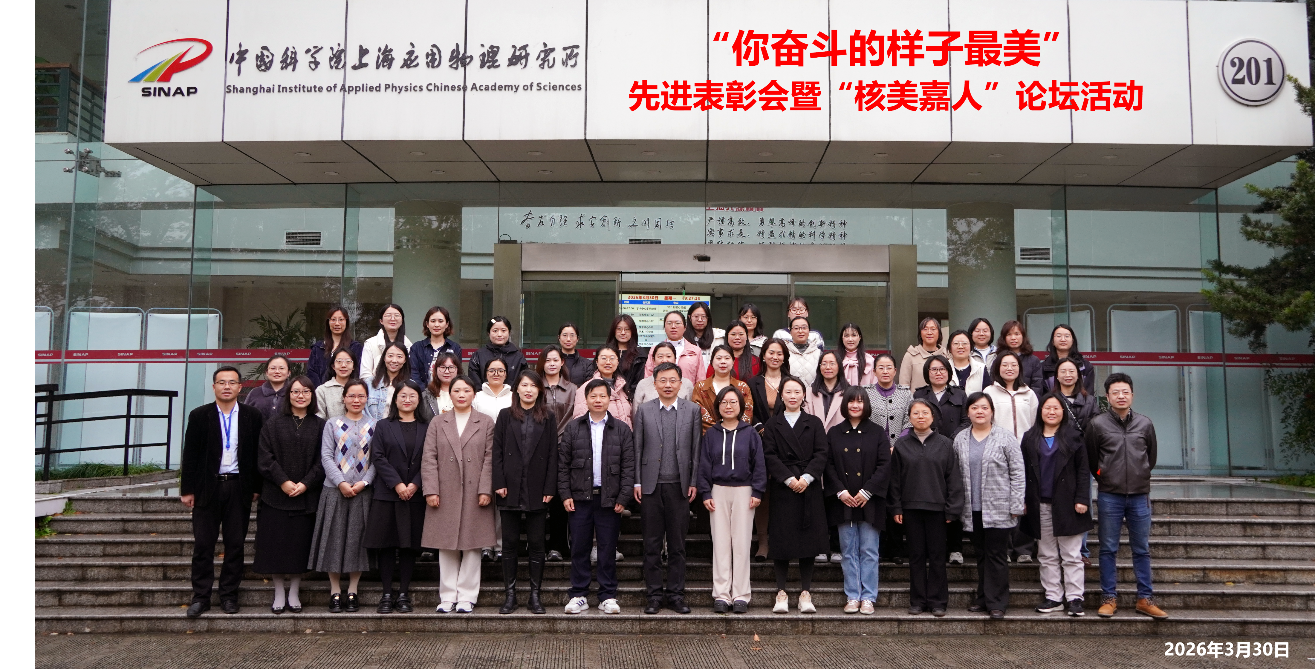 2026年度,上海应物所多位女科技工作者因其在科研攻关中的优异表现,荣获上级单位多项荣誉表彰。周翀荣获“中国科学院三八红旗手”称号,张林娟荣获“上海市科技系统三八红旗手”称号,钍基熔盐堆化学安全技术组荣获“上海市科技系统三八红旗集体”称号。同时,上海应物所开展“你奋斗的样子最美”巾帼选树表彰和巾帼故事分享活动。活动中对荣获2024-2025年度所级“三八红旗手”10名个人,所级“三八红旗集体”的 3个集体进行了表彰。在“核美嘉人”论坛——我身边的巾帼故事分享环节,周翀、张林娟、姚剑分别作主题报告,分享了她们为核能事业努力奋斗感人故事,展现了女职工勇挑重担、拼搏进取的精神风貌。活动进一步引导和激励大家围绕国家紧迫需求和世界科技前沿,勇攀高峰,投身科技创新事业的使命感和责任感。