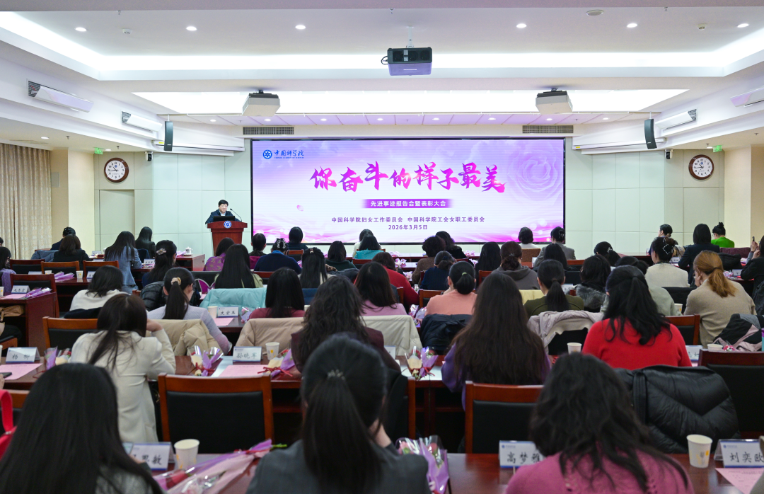 在第116个“三八”国际劳动妇女节到来之际,3月5日上午,中国科学院妇工委、中国科学院工会女工委举办“你奋斗的样子最美”先进事迹报告会暨表彰大会。中国科学院副秘书长、机关党委分管日常工作的副书记王大同同志出席会议并讲话、为获奖代表颁奖。